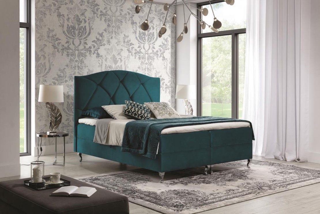 Επενδυμένο κρεβάτι Brando-Petrol-160 x 200