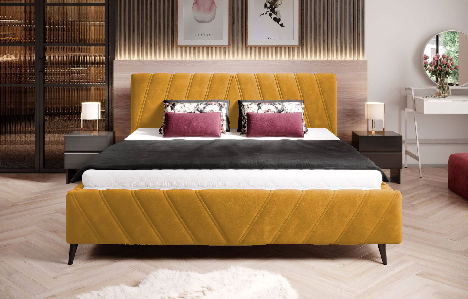 Επενδυμένο κρεβάτι Calisty-Moustardi-140 x 200
