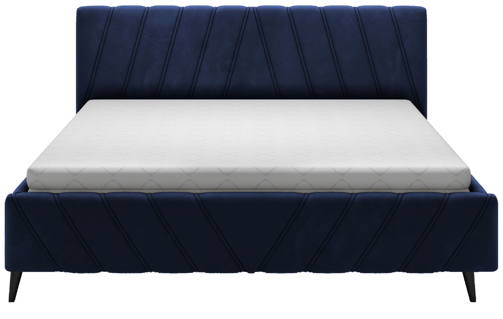 Επενδυμένο κρεβάτι Calisty σε κομψό διαγώνιο ριγέ σχεδιασμό. Μοντέρνας αισθητικής που θα προσθέσει στον χώρο σας ιδιαίτερο ύφος ενώ θα σας χαρίσει στιγμές χαλάρωσης και ξεκούρασης.