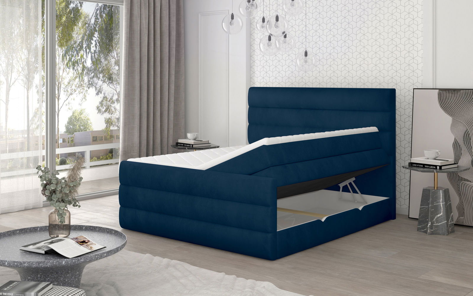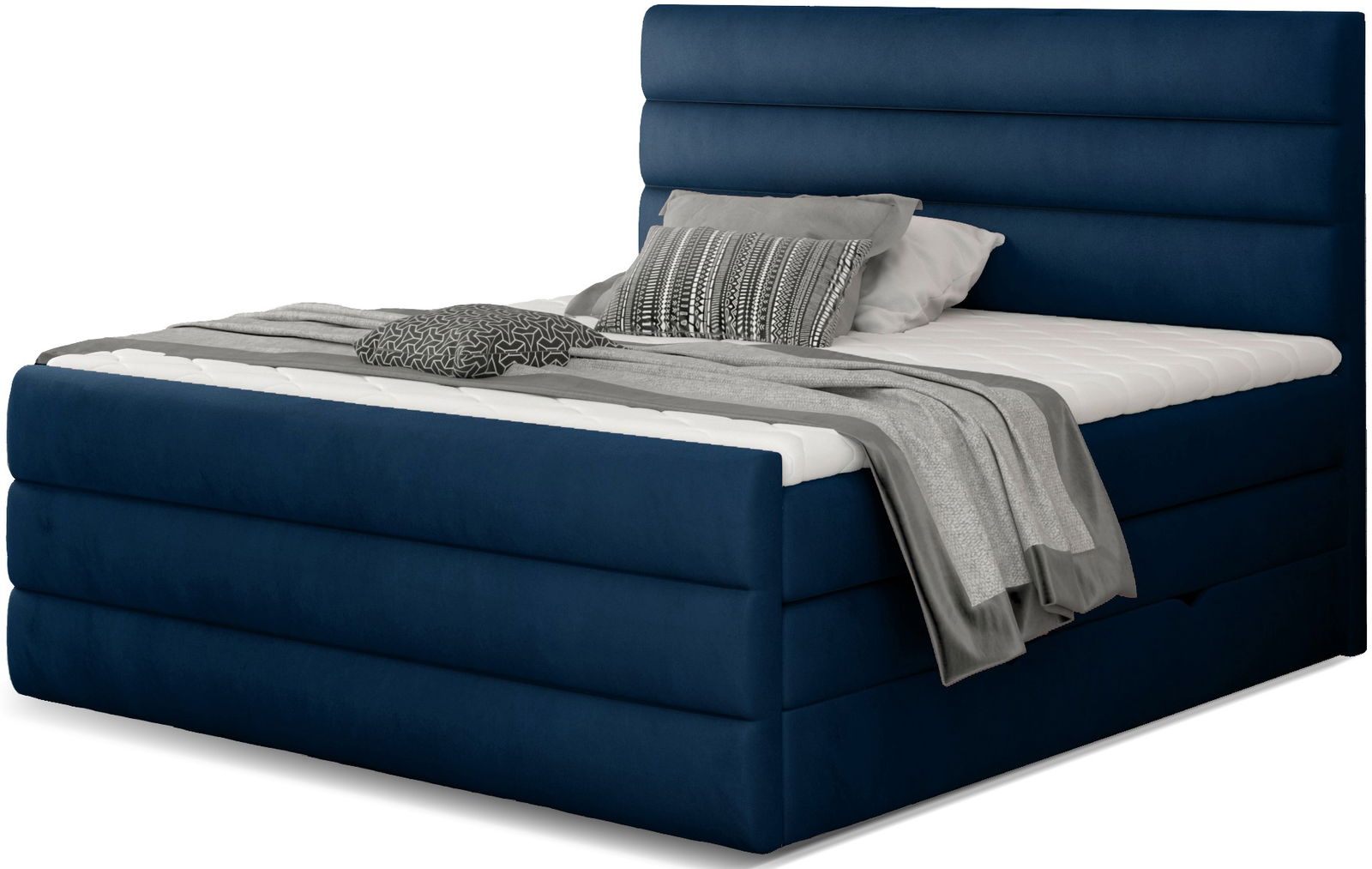 Επενδυμένο κρεβάτι Caribou σε μοντέρνο σχεδιασμό με γραμμικό μοτίβο, θα χαρίσει στον χώρο του υπνοδωματίου σας στυλ, ενώ ο μεγάλος αποθηκευτικός χώρος θα καλύψει όλες τις ανάγκες σας.