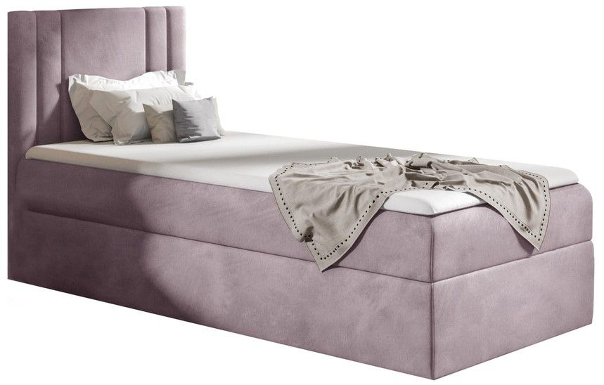 Επενδυμένο κρεβάτι Carmen Mini, σε πρακτικές διαστάσεις και έξυπνο σχεδιασμό, έτοιμο να διακοσμήσει το χώρο σας και να σας χαρίσει ατελείωτες στιγμές χαλάρωσης, ιδανικό για το υπνοδωμάτιο.