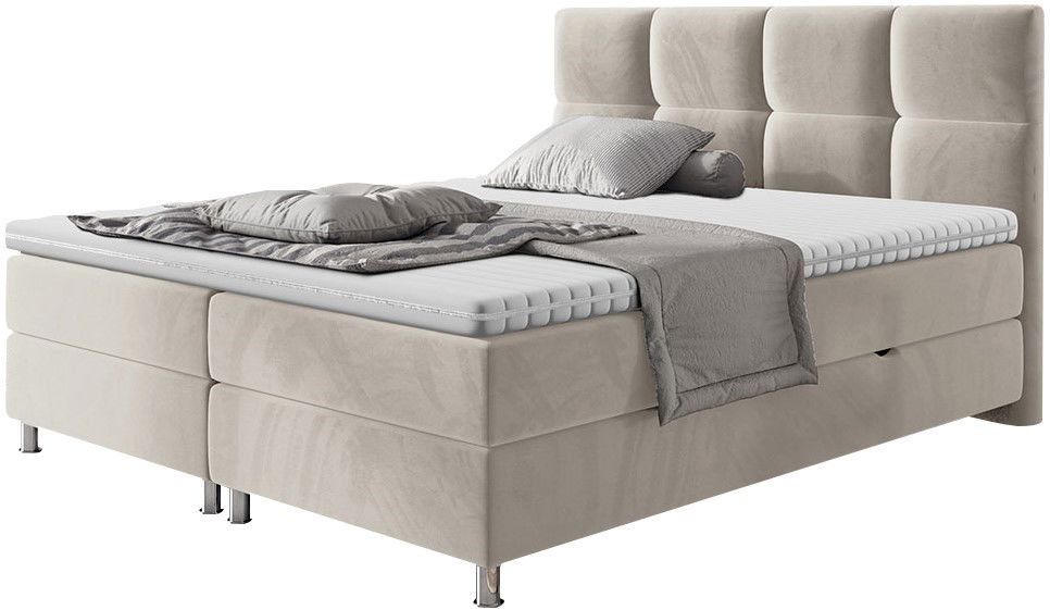 Επενδυμένο κρεβάτι Dave σχεδιασμένο με κυβικό μοτίβο στο προσκέφαλο, θα προσφέρει στο υπνοδωμάτιό σας μοντέρνο ύφος και θα σας χαρίσει στιγμές ανάπαυσης και ξεκούρασης, ενώ ο άφθονος αποθηκευτικός χώρος θα καλύψει όλες τις ανάγκες σας.