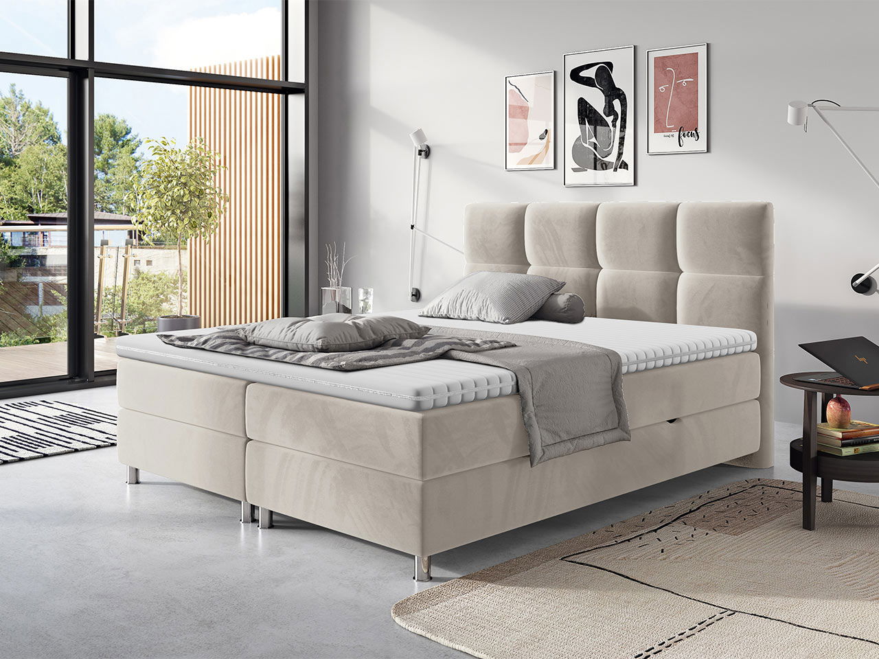 Επενδυμένο κρεβάτι Dave σχεδιασμένο με κυβικό μοτίβο στο προσκέφαλο, θα προσφέρει στο υπνοδωμάτιό σας μοντέρνο ύφος και θα σας χαρίσει στιγμές ανάπαυσης και ξεκούρασης, ενώ ο άφθονος αποθηκευτικός χώρος θα καλύψει όλες τις ανάγκες σας.
