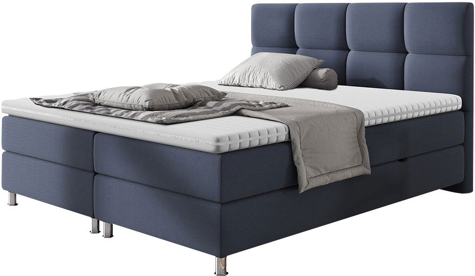 Επενδυμένο κρεβάτι Dave σχεδιασμένο με κυβικό μοτίβο στο προσκέφαλο, θα προσφέρει στο υπνοδωμάτιό σας μοντέρνο ύφος και θα σας χαρίσει στιγμές ανάπαυσης και ξεκούρασης, ενώ ο άφθονος αποθηκευτικός χώρος θα καλύψει όλες τις ανάγκες σας.