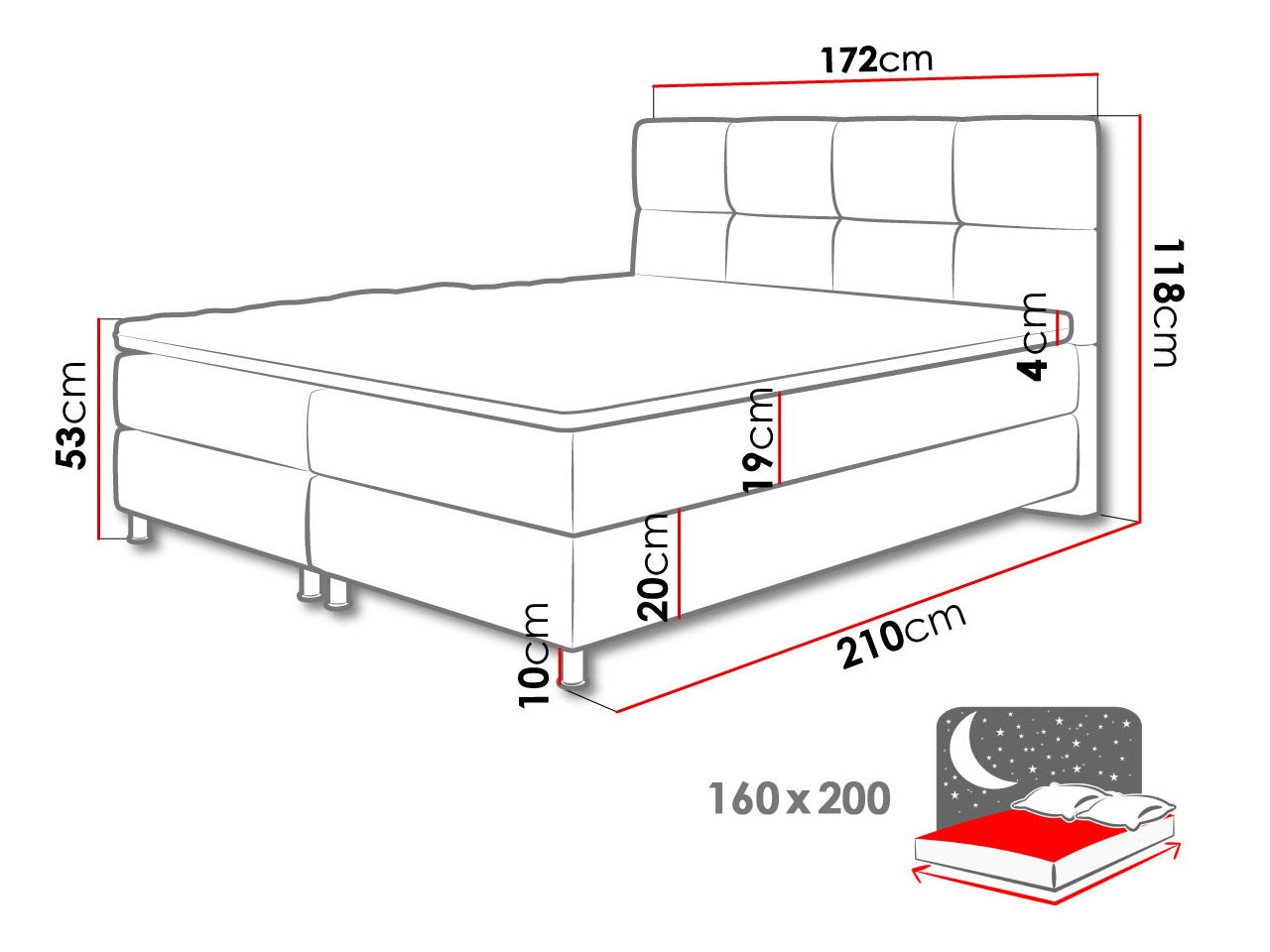 – Υπόστρωμα με ελατήρια Bonell ενσωματωμένο στον σκελετό του κρεβατιού.