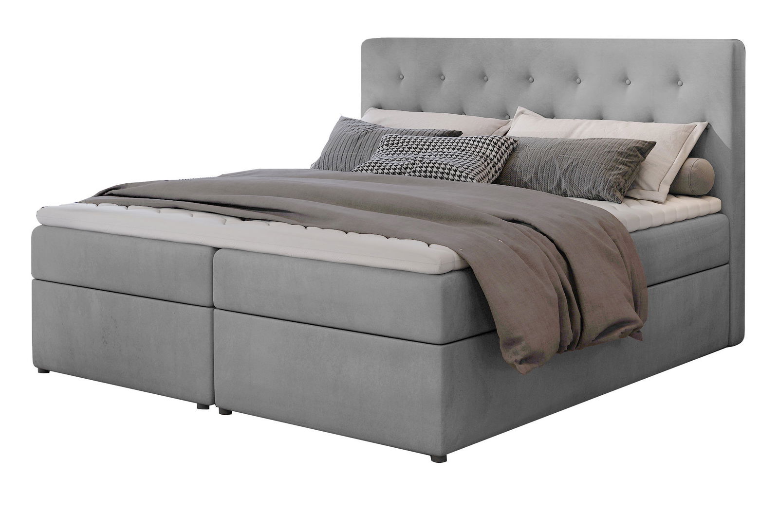 Επενδυμένο κρεβάτι Delande, σε ποικίλες γήινες αποχρώσεις με διακριτική λεπτομέρεια καπιτονέ σχεδίου στο κεφαλάρι. Διαθέτει ενσωματωμένο στρώμα, το οποίο προσαρμόζεται στην επιφάνεια του σώματός σας, διασφαλίζοντας τη σωστή στάση κατά τη διάρκεια του ύπνου.