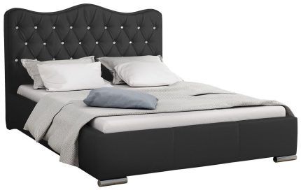 Επενδυμένο κρεβάτι Dobrik-140 x 200-Μαύρο-Χωρίς μηχανισμό ανύψωσης