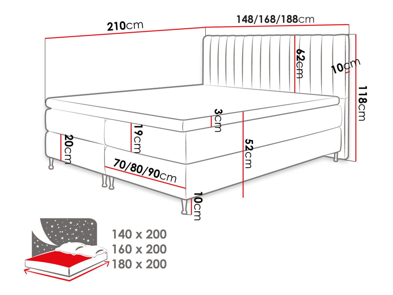 Δύο στρώματα αποτελούμενα από ελατήρια & αφρός πολυουθεράνης σε συμπαγές ξύλινο πλαίσιο, μεσαίας σκληρότητας H3