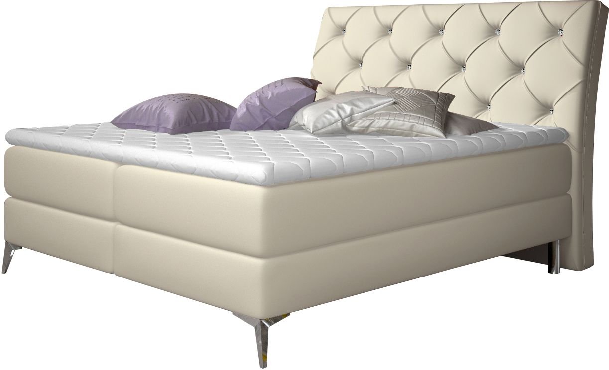 Επενδυμένο κρεβάτι Ethel με στρώμα και ανώστρωμα-160 x 200-Krem