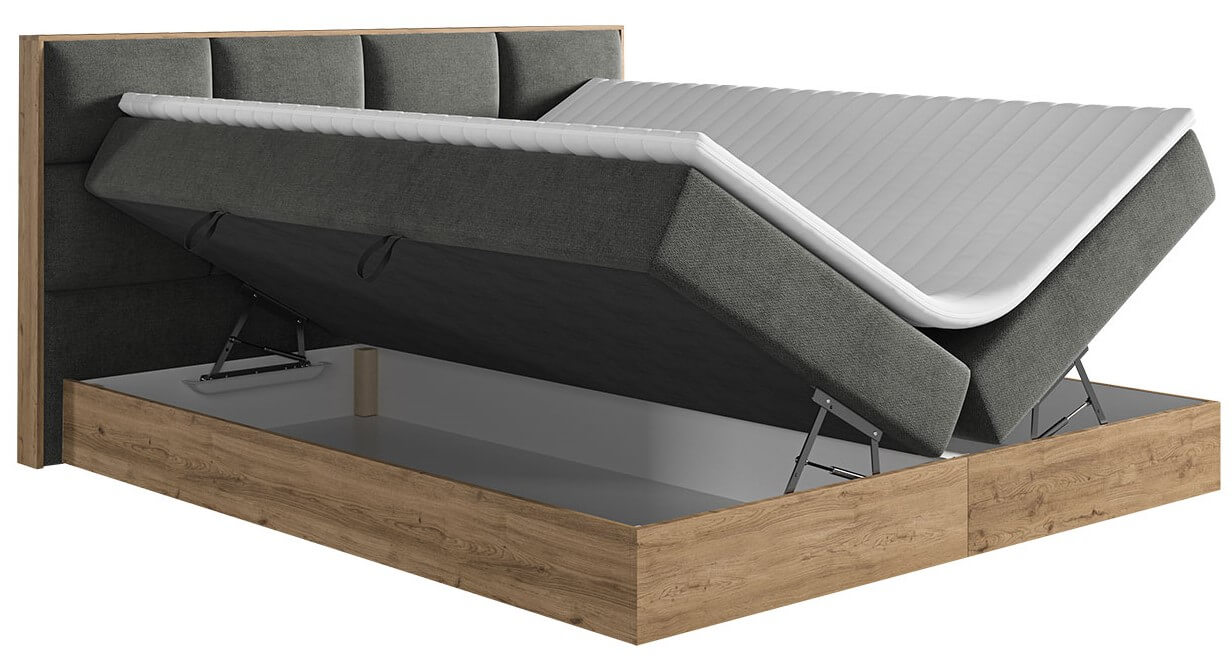 Επενδυμένο κρεβάτι Euphoria, κομψά σχεδιασμένο, συνδυάζει αρμονικά την υφή του υφάσματος, με την δομή του ξύλου. Διαθέτει δυο στρώματα με ελατήρια, τα οποία παρέχουν σωστή στήριξη σε όλο το σώμα. Τέλος, η ραφή που χρησιμοποιείται στο επικαλυμμένο προσκέφαλο, δημιουργεί ένα τρισδιάστατο μοτίβο, που θα προσδώσει κομψότητα και λάμψη στον χώρο σας.