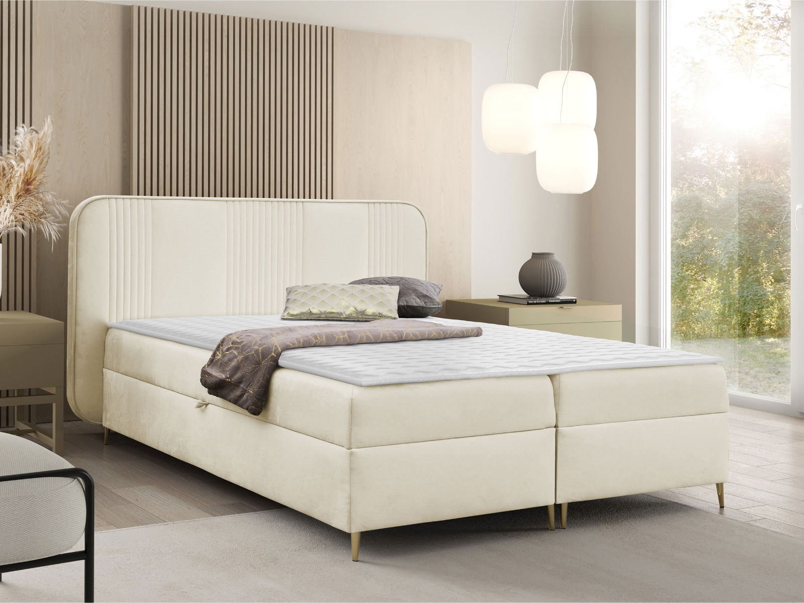 Το επενδυμένο κρεβάτι Fandy συνδυάζει κομψότητα και άνεση, προσφέροντας μοντέρνο σχεδιασμό με υψηλής ποιότητας υλικά. Διαθέτει επένδυση από ύφασμα, προσφέροντας μια μαλακή αίσθηση στην αφή και ενισχύοντας την αισθητική του υπνοδωματίου. Είναι ανθεκτικό, εύκολο στη συντήρηση και ιδανικό για να προσφέρει έναν ήρεμο και ξεκούραστο ύπνο.
