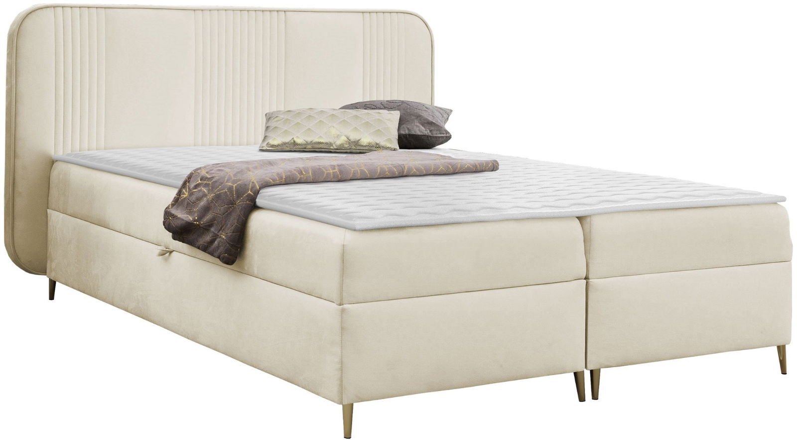 Το επενδυμένο κρεβάτι Fandy συνδυάζει κομψότητα και άνεση, προσφέροντας μοντέρνο σχεδιασμό με υψηλής ποιότητας υλικά. Διαθέτει επένδυση από ύφασμα, προσφέροντας μια μαλακή αίσθηση στην αφή και ενισχύοντας την αισθητική του υπνοδωματίου. Είναι ανθεκτικό, εύκολο στη συντήρηση και ιδανικό για να προσφέρει έναν ήρεμο και ξεκούραστο ύπνο.