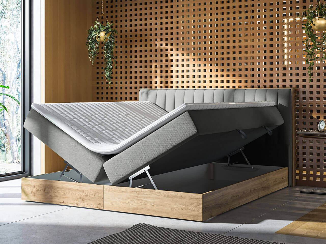 Επενδυμένο κρεβάτι Harmonica, μοντέρνου σχεδιασμού. Διαθέτει δυο στρώματα με ελατήρια, τα οποία παρέχουν σωστή στήριξη σε όλο το σώμα. Τέλος, η ραφή που χρησιμοποιείται στο επικαλυμμένο προσκέφαλο, δημιουργεί ένα τρισδιάστατο μοτίβο, που θα προσδώσει κομψότητα και λάμψη στον χώρο σας.