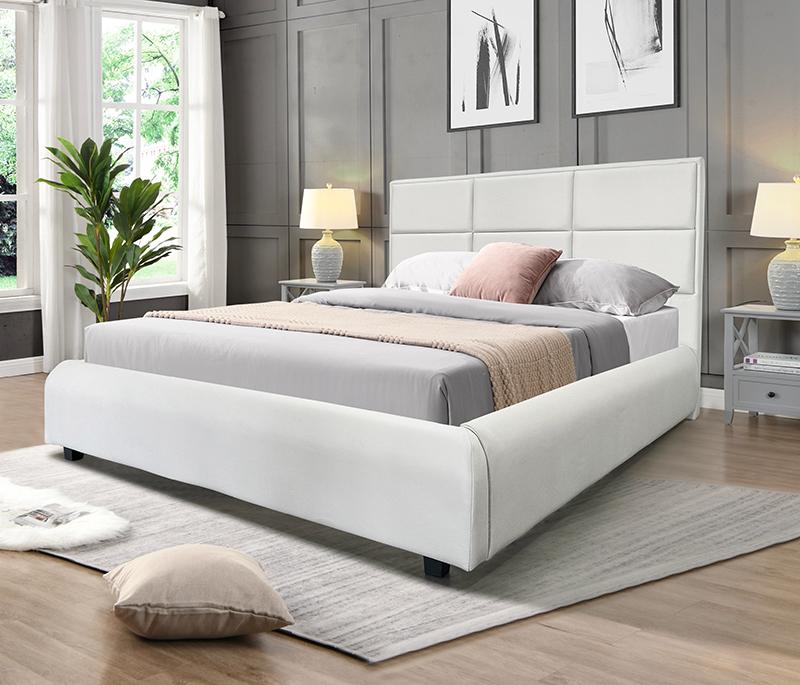 Επενδυμένο κρεβάτι Karen υψηλής αισθητικής με διακριτικό λιτό σχέδιο στο κεφαλάρι.