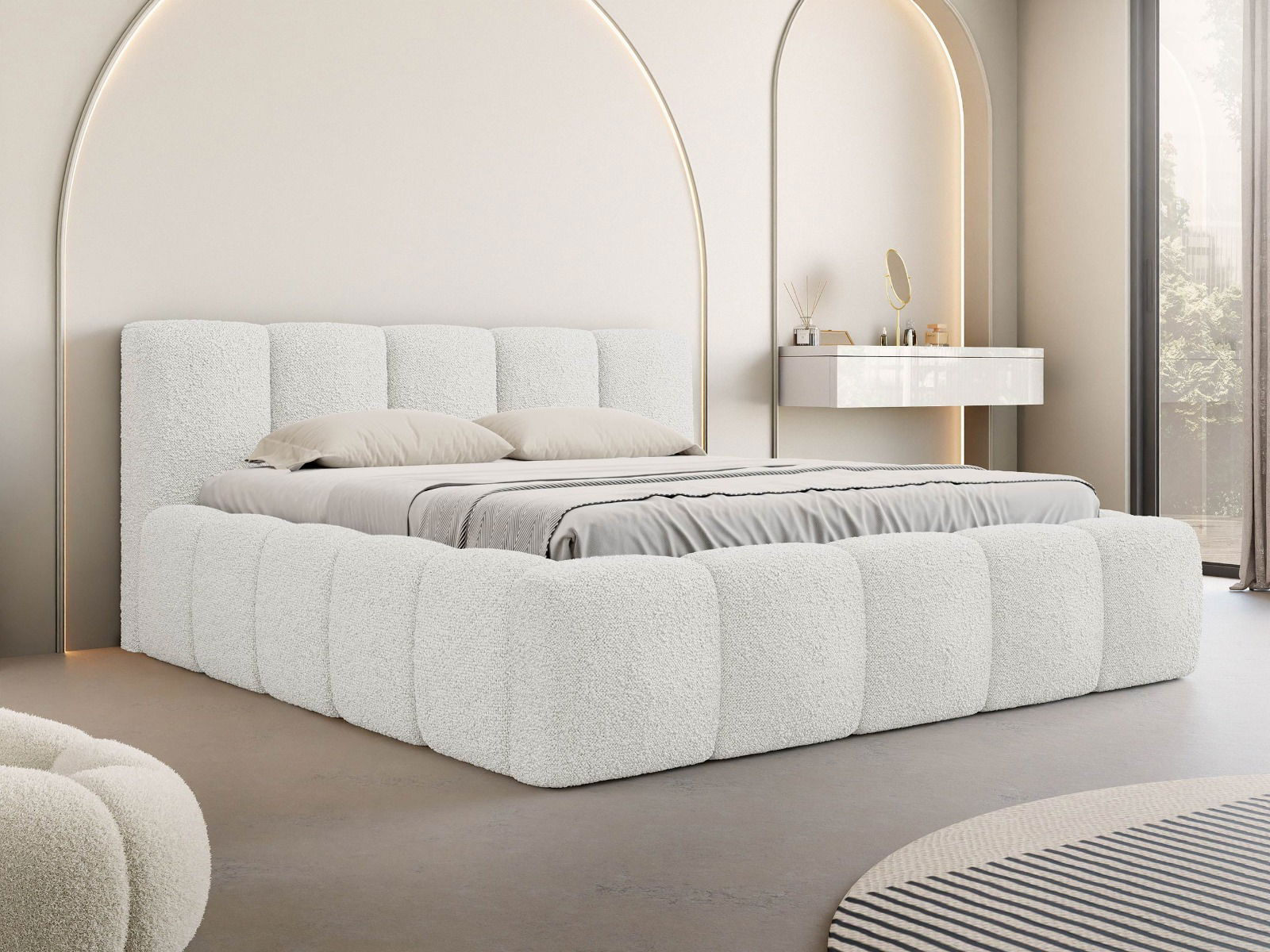 Το επενδυμένο κρεβάτι Kevson συνδυάζει μοντέρνο σχεδιασμό και άνεση. Η επένδυση του είναι το μεγαλύτερο πλεονέκτημά του, αφού η μαλακή και βελούδινη δομή του φαίνεται πολύ ζεστή και μοντέρνα. Είναι ένα υλικό που τραβάει αμέσως το μάτι, αλλά λειτουργεί επίσης εξαιρετικά στην καθημερινή χρήση, είναι ανθεκτικό στην τριβή και απλά ποιοτικό.
