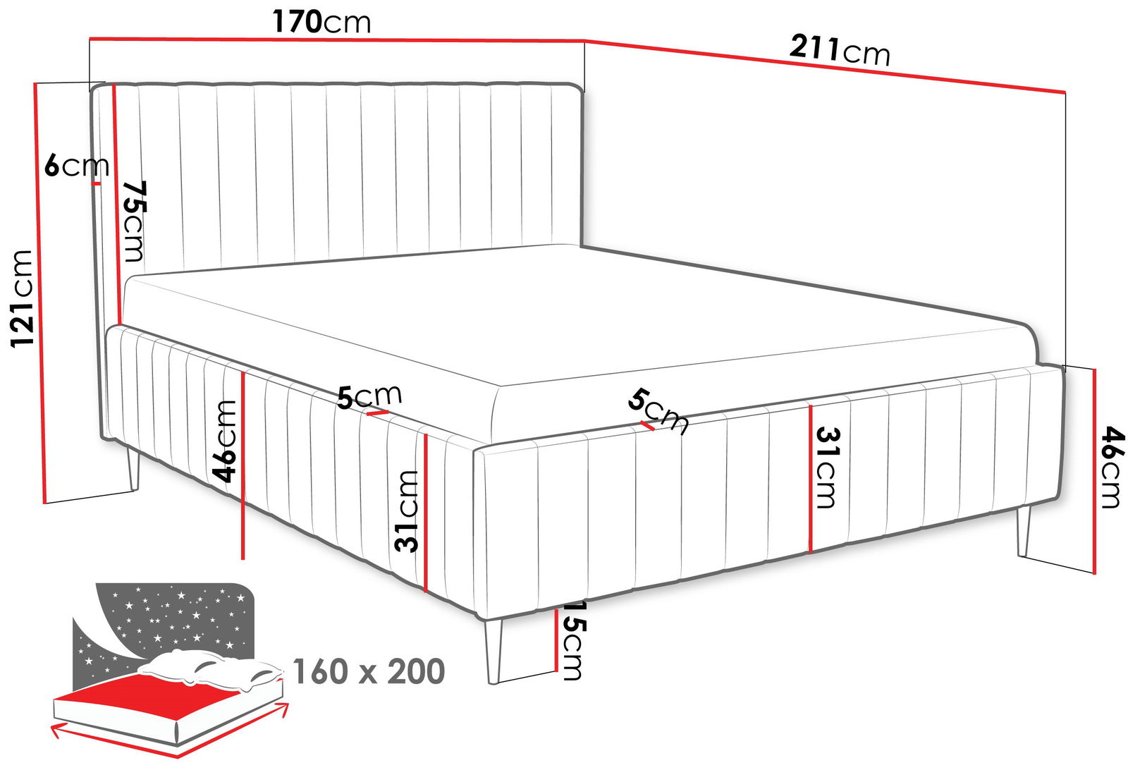 Επενδυμένο κρεβάτι Lewezo-Mple Skouro-160 x 200