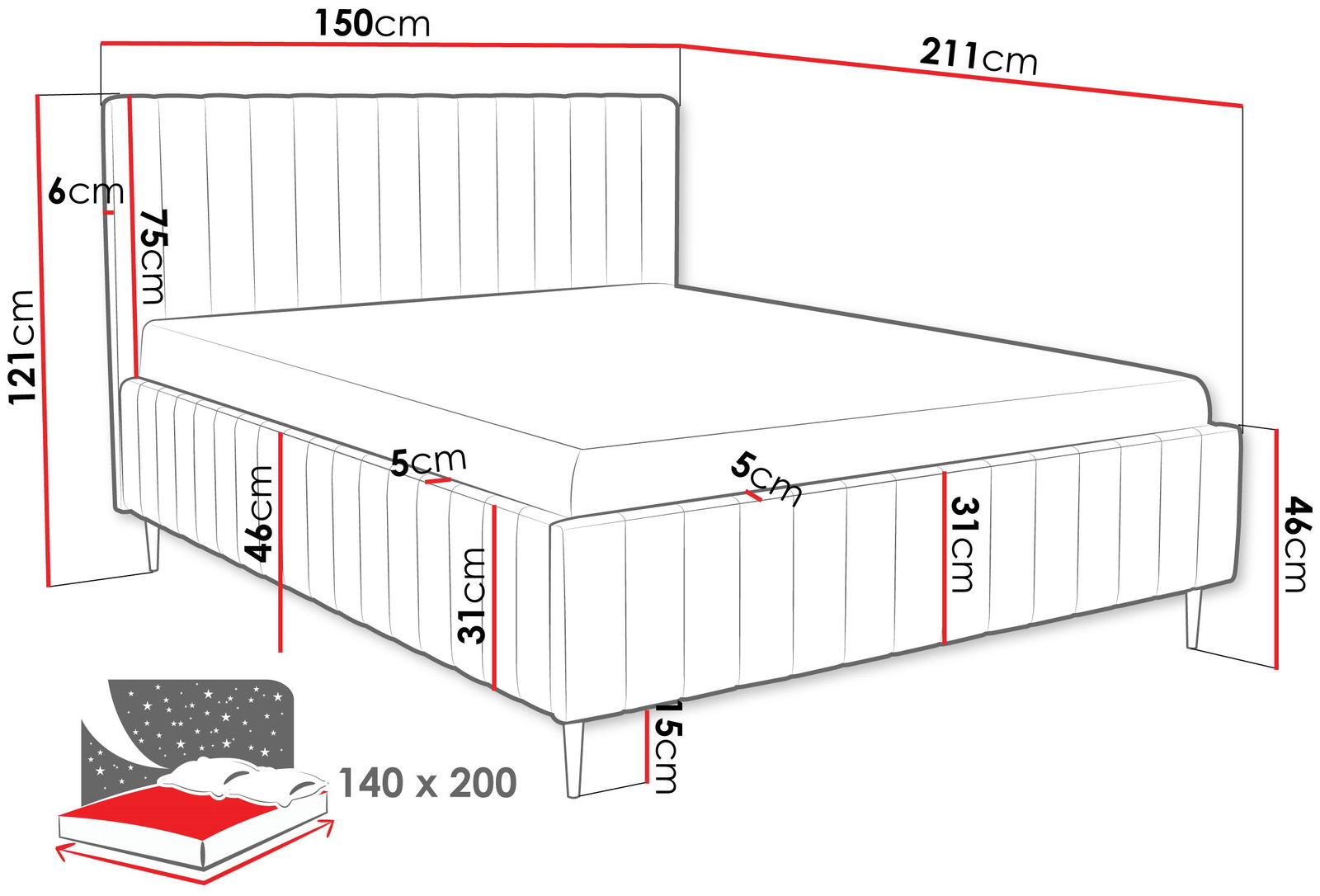 Επενδυμένο κρεβάτι Lewezo-Mporntw-140 x 200