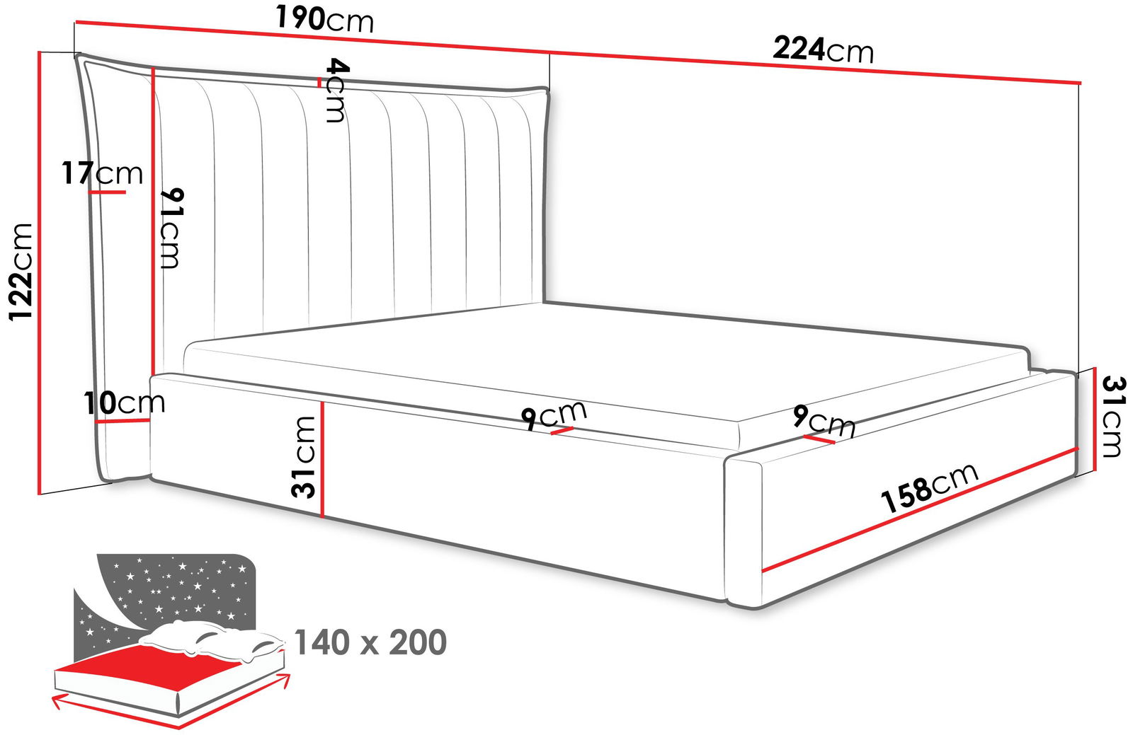 *Το κρεβάτι είναι επενδυμένο μπρος-πίσω με το αντίστοιχο ύφασμα του