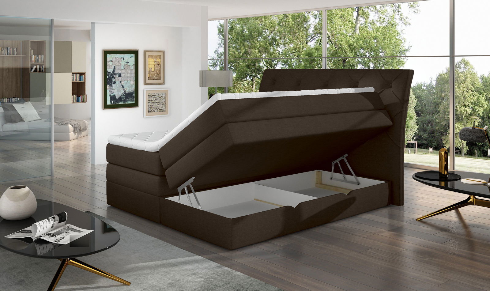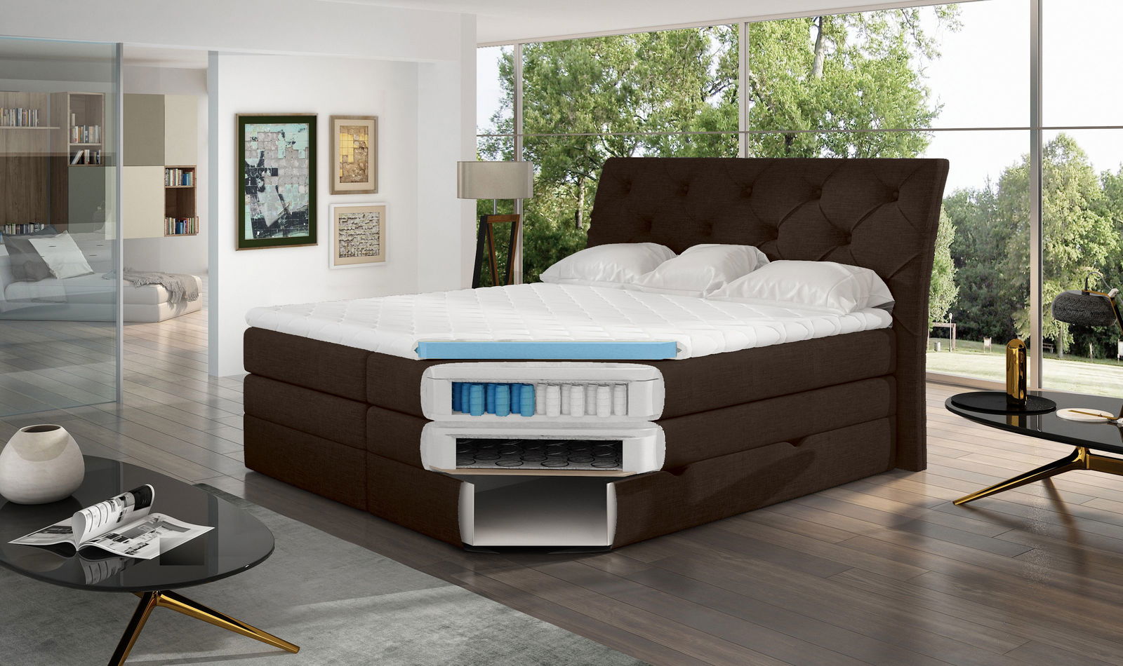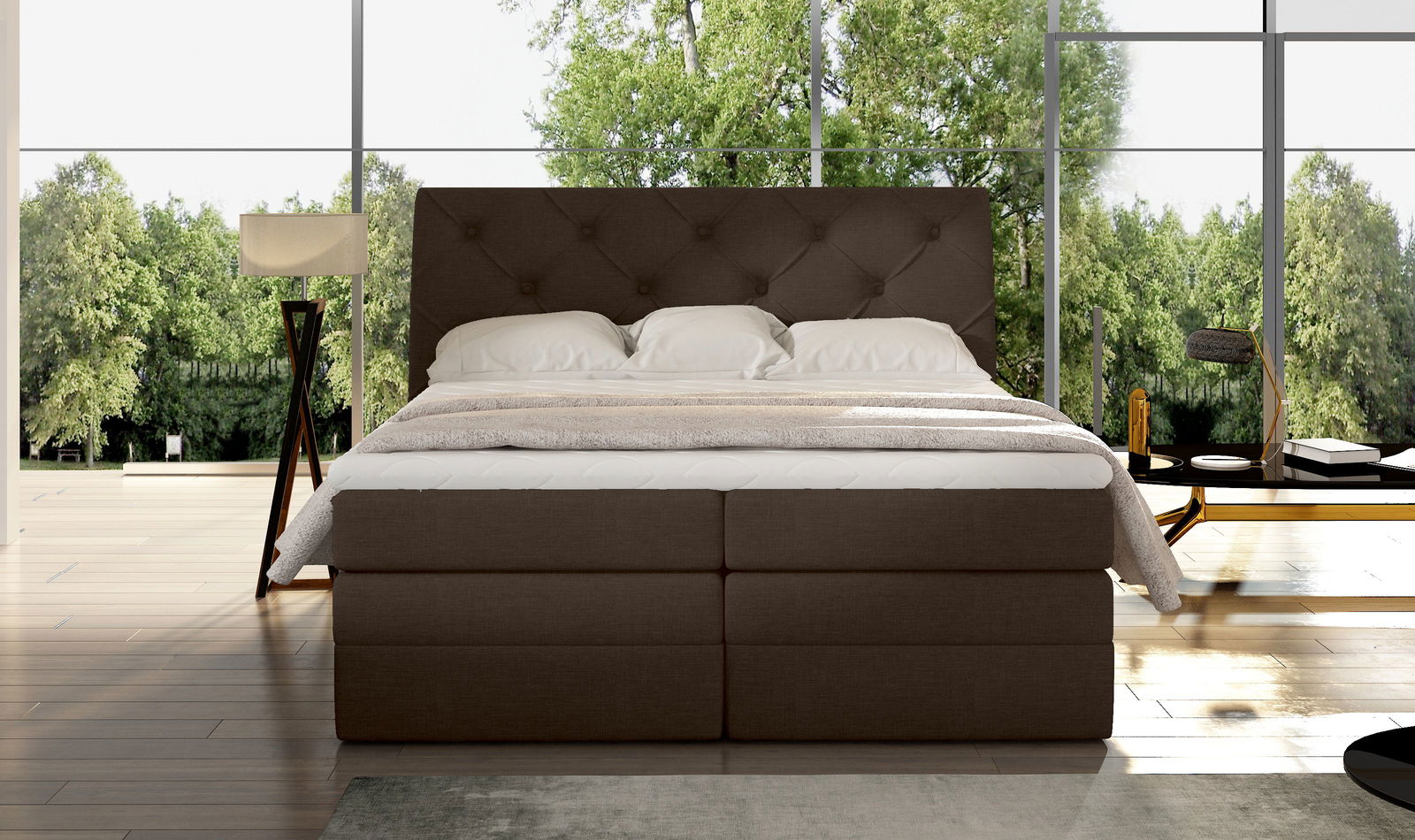 Επενδυμένο κρεβάτι Lorane σε σχεδιασμό με καπιτονέ μοτίβο στο προσκέφαλο, θα χαρίσει στον χώρο του υπνοδωματίου σας μοντέρνο ύφος ενώ ο μεγάλος αποθηκευτικός χώρος θα καλύψει όλες τις ανάγκες σας.