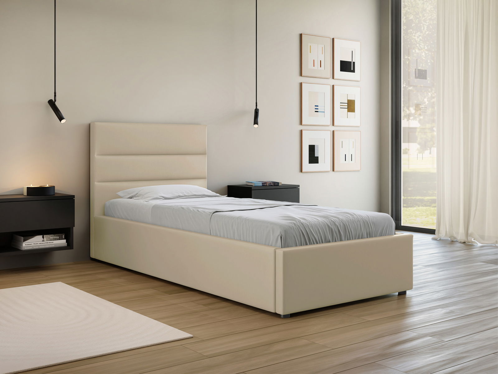 Επενδυμένο Κρεβάτι Lutko-Μπεζ-90 x 200