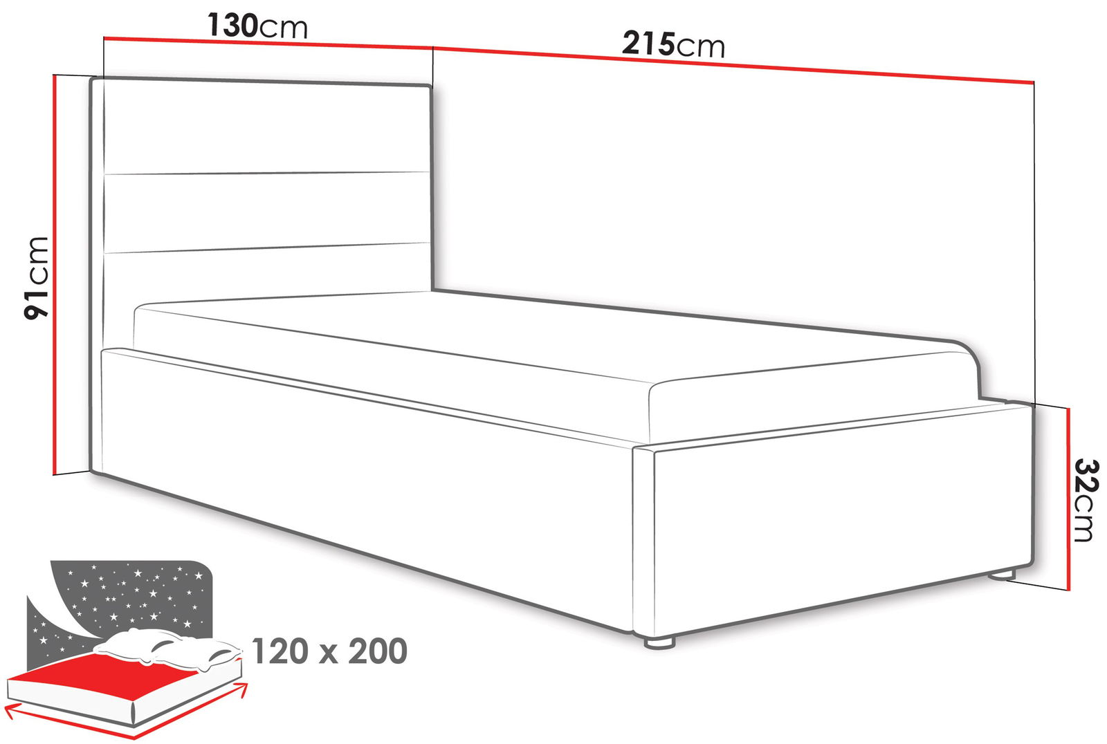 Επενδυμένο Κρεβάτι Lutko-Γκρι-120 x 200
