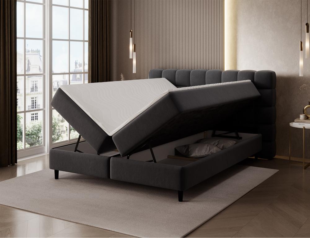 Επενδυμένο κρεβάτι Mecan-Μαύρο-160 x 200