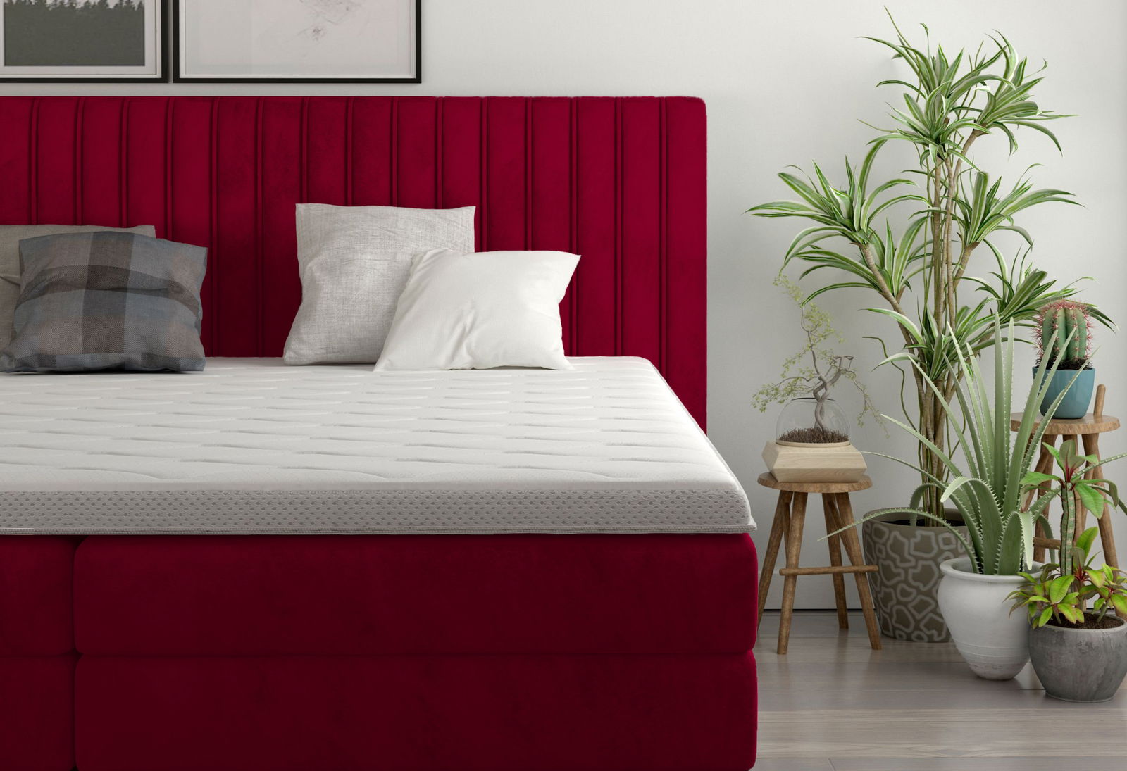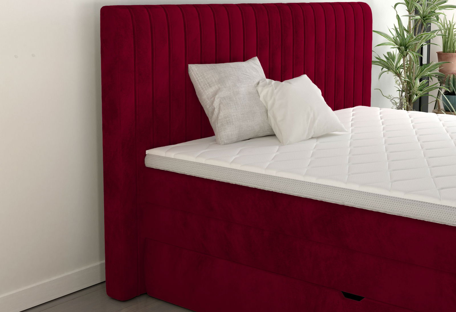 Επενδυμένο κρεβάτι Melantha με στρώμα και ανώστρωμα-160 x 200-Kokkino
