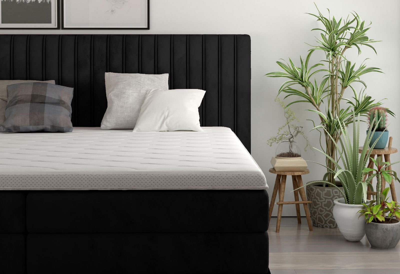 Επενδυμένο κρεβάτι Melantha με στρώμα και ανώστρωμα-160 x 200-Mauro