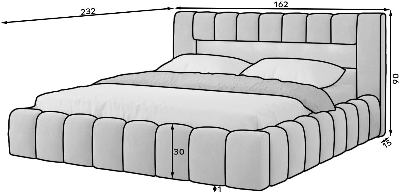*Η πλάτη του κρεβατιού είναι επενδυμένη με φόδρα.