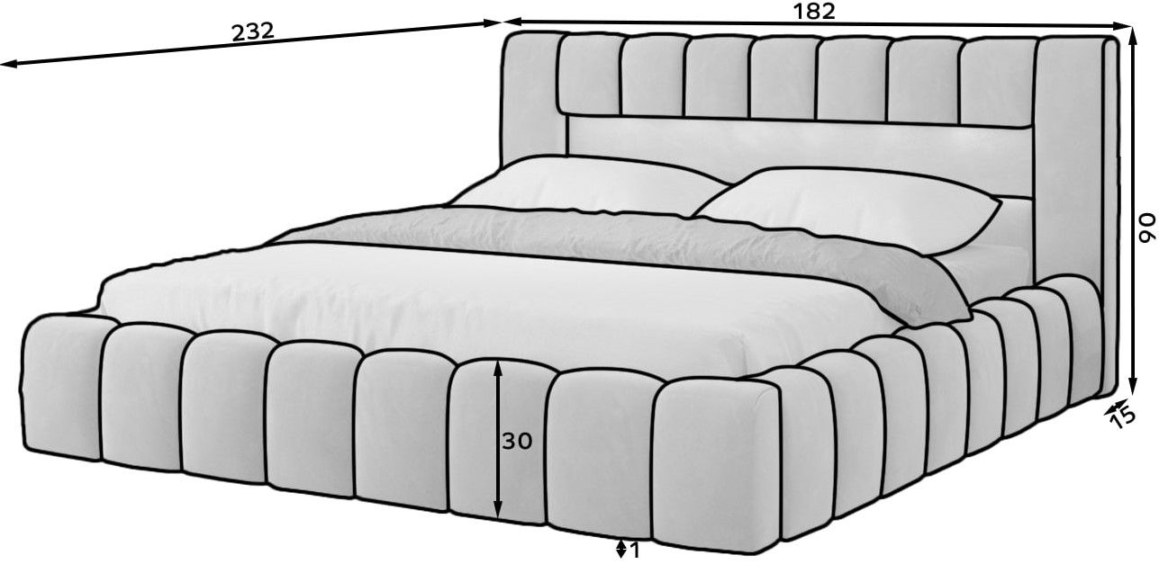 *Η πλάτη του κρεβατιού είναι επενδυμένη με φόδρα.
