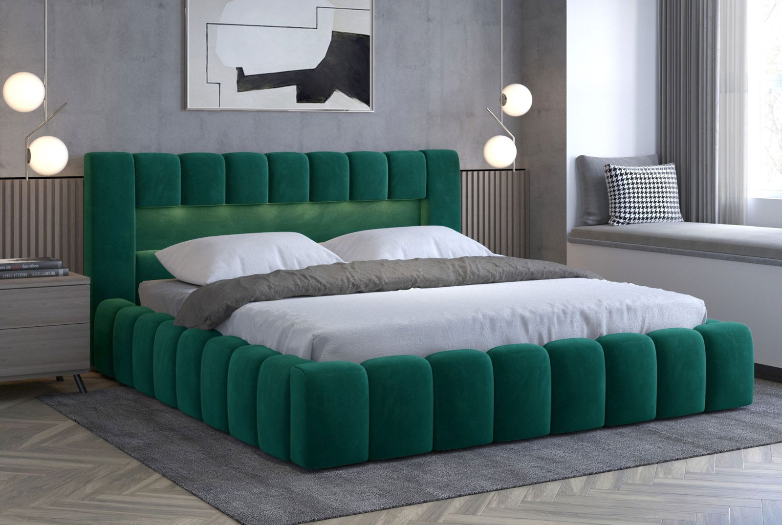 Επενδυμένο κρεβάτι Mercy-Prasino-180 x 200