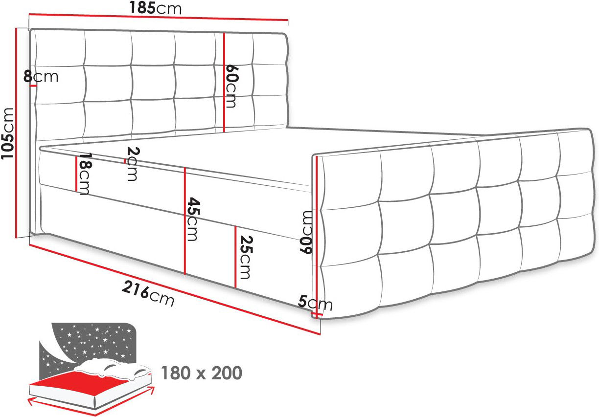 Επενδυμένο κρεβάτι Milano II-Tirkouaz-180 x 200