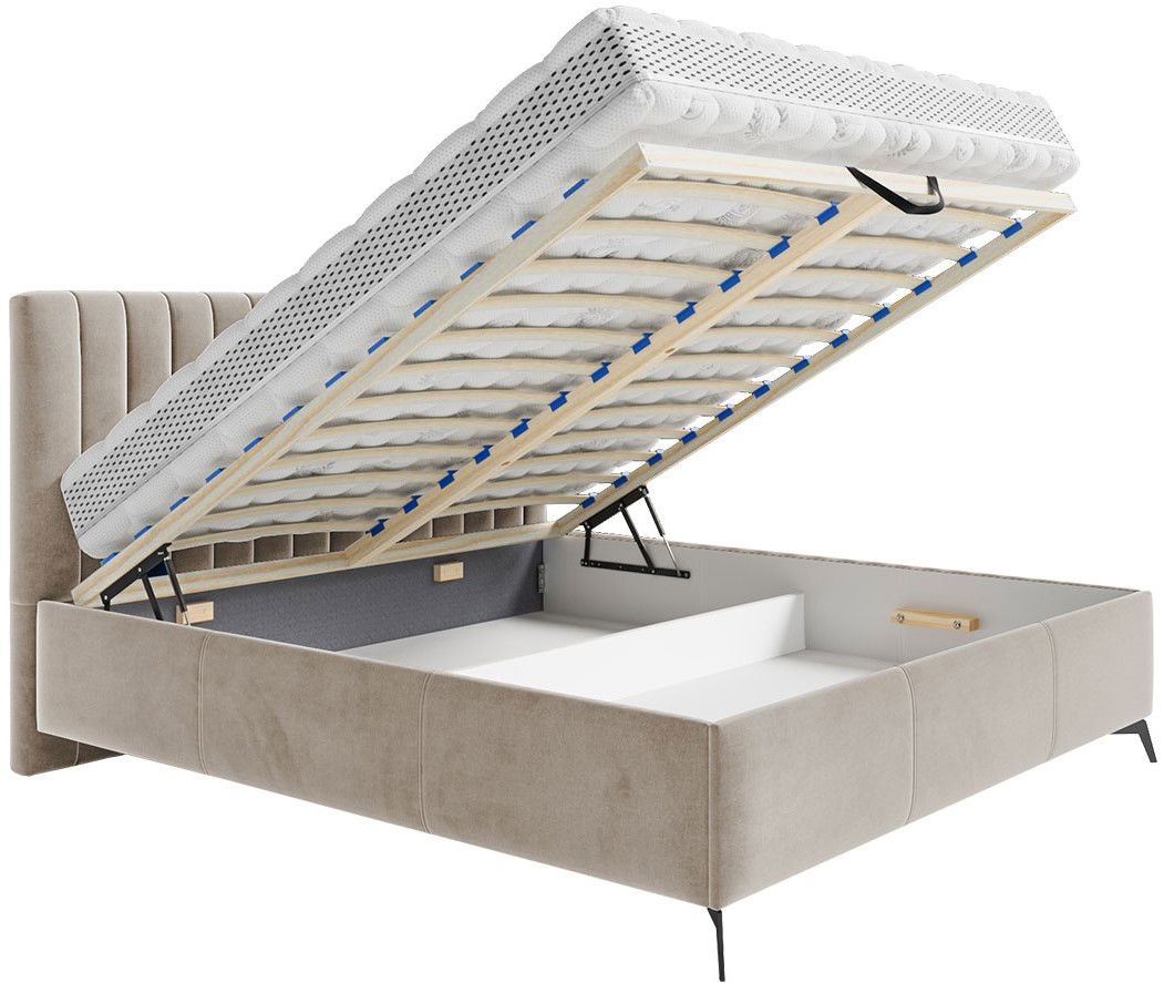 Επενδυμένο κρεβάτι Morris, με μοντέρνο αλλά και ξεχωριστό σχεδιασμό, ιδανικό για ατελίωτες ώρες ξεκούρασης και ύπνου, επιπλέον προσφέρει κρυφό αποθηκευτικό χώρο με εύκολη πρόσβαση χάρης τον μηχανισμό του.