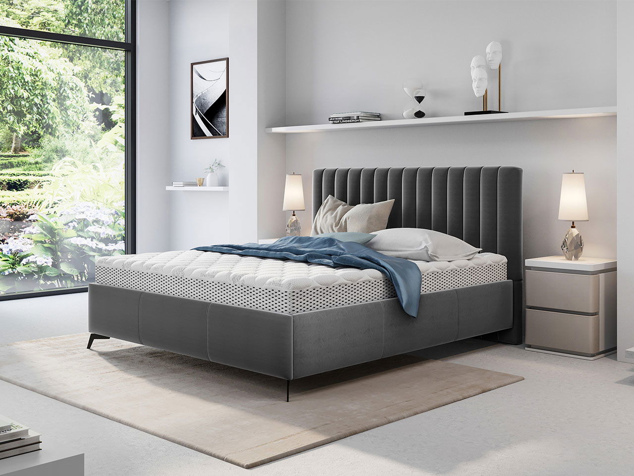 Επενδυμένο κρεβάτι Morris, με μοντέρνο αλλά και ξεχωριστό σχεδιασμό, ιδανικό για ατελίωτες ώρες ξεκούρασης και ύπνου, επιπλέον προσφέρει κρυφό αποθηκευτικό χώρο με εύκολη πρόσβαση χάρης τον μηχανισμό του.