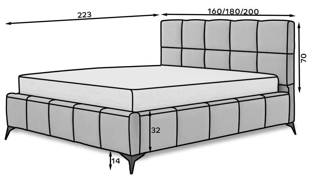 Επενδυμένο κρεβάτι Mosad με κεφαλάρι.Προσφέρει εξαιρετική άνεση κατά την διάρκεια του ύπνου λόγο των διαστάσεων του.