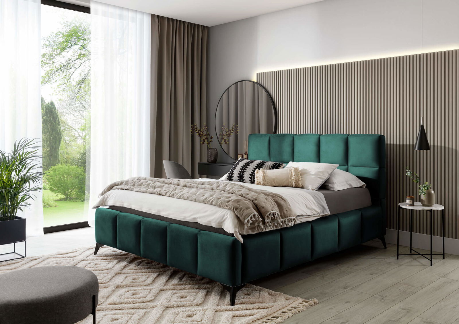 Επενδυμένο κρεβάτι Mosad-Prasino-180 x 200
