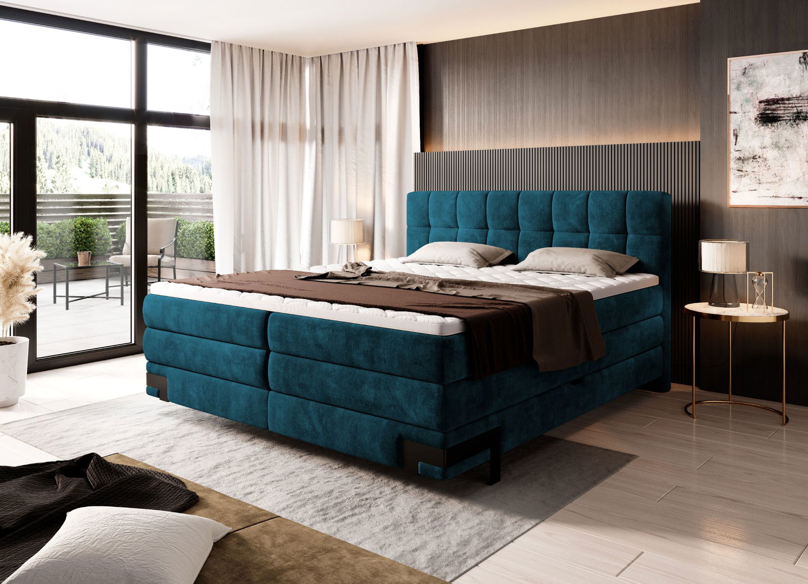 Επενδυμένο κρεβάτι Navona με στρώμα και ανώστρωμα-Petrol-160 x 200
