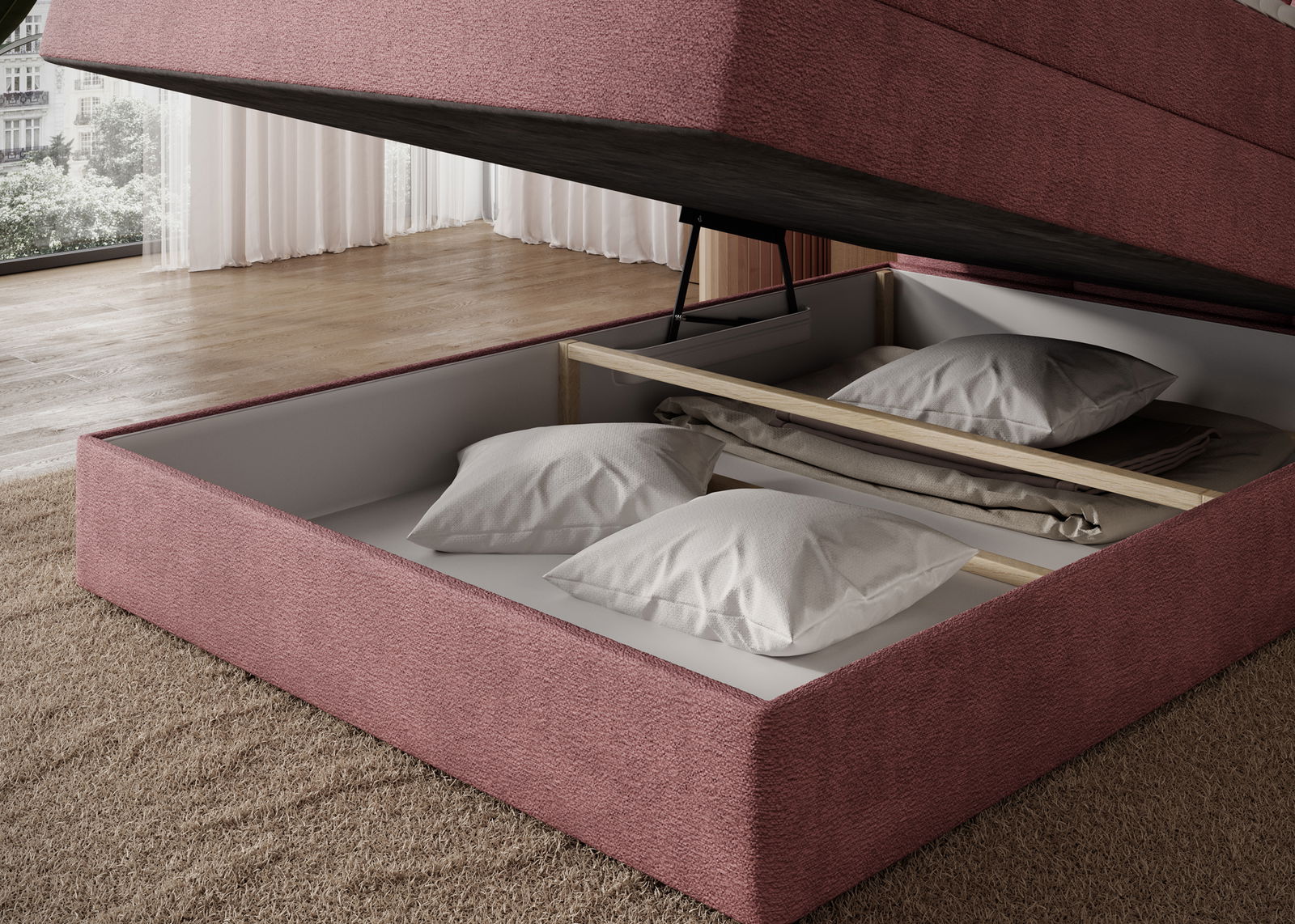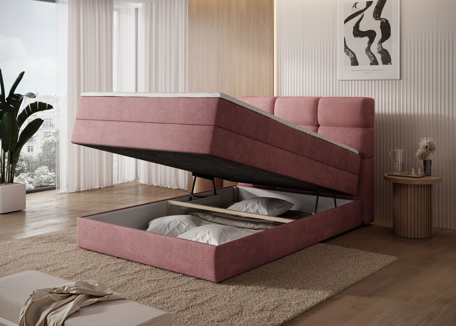 Το επενδυμένο κρεβάτι Padion αποπνέει σύγχρονη κομψότητα και αίσθηση ισορροπίας, δημιουργώντας ένα υπνοδωμάτιο που ξεχωρίζει για τη διακριτική του πολυτέλεια. Η υφασμάτινη επένδυση και οι προσεγμένες του γραμμές αναδεικνύουν τον χώρο με καθαρή αισθητική, ενώ η στιβαρή κατασκευή εξασφαλίζει σταθερότητα και άνεση. Τη λειτουργικότητά του συμπληρώνει ο αποθηκευτικός χώρος με μηχανισμό ανύψωσης προσφέροντας εύκολη πρόσβαση και πρακτικότητα στην καθημερινότητα. Η εμπειρία ύπνου ολοκληρώνεται με το ενσωματωμένο στρώμα και ανώστρωμα, προσφέροντας υποστήριξη, άνεση και ολοκληρωμένη λύση ξεκούρασης σε μία αρμονική σύνθεση αισθητικής και λειτουργικότητας.