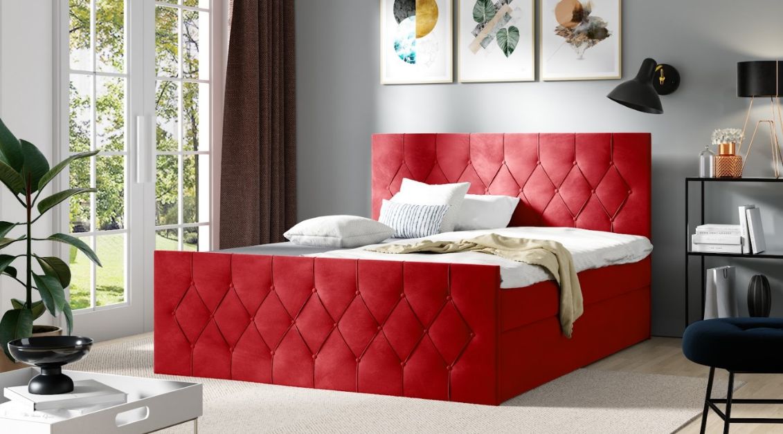 Επενδυμένο κρεβάτι Sky lux-Kokkino-140 x 200