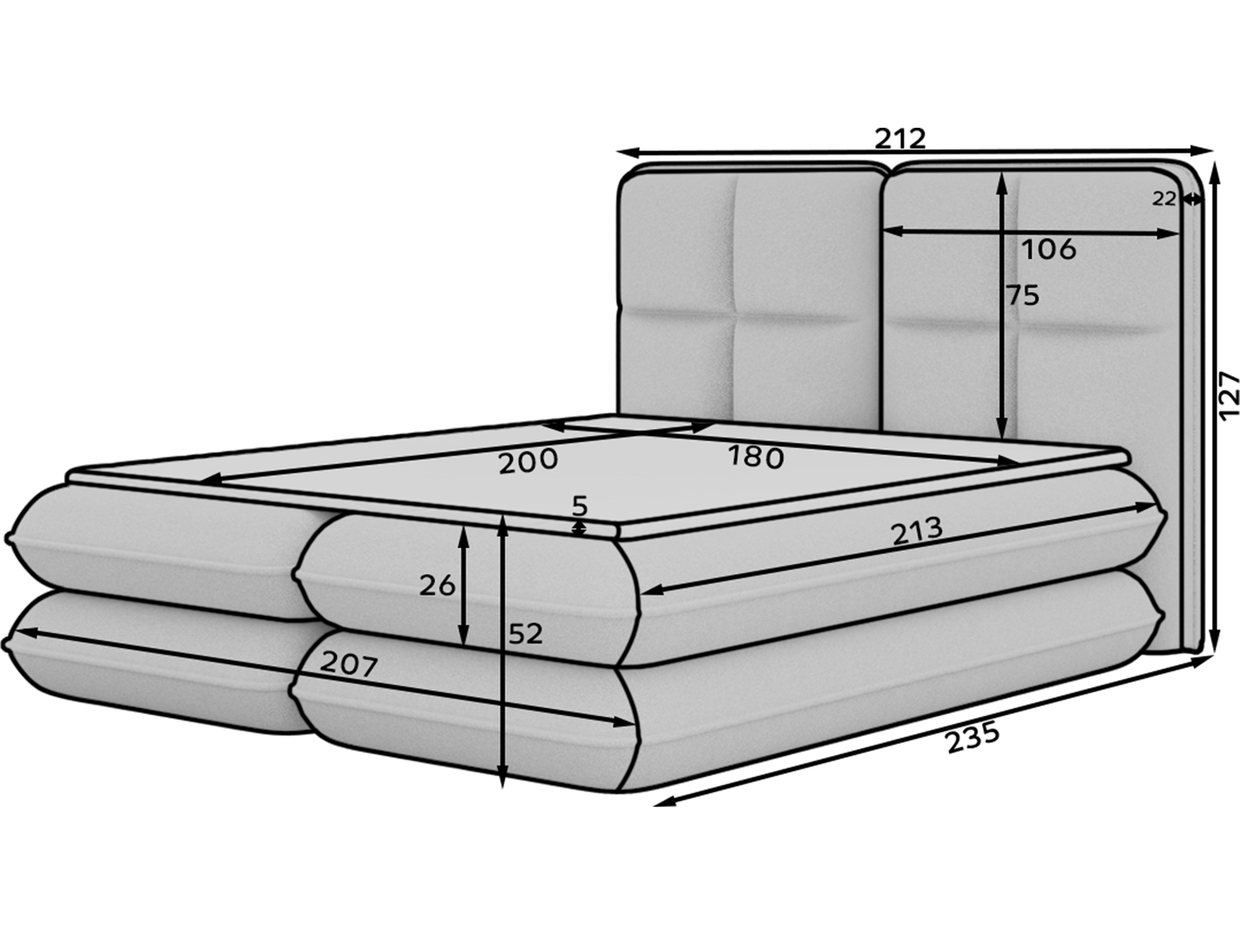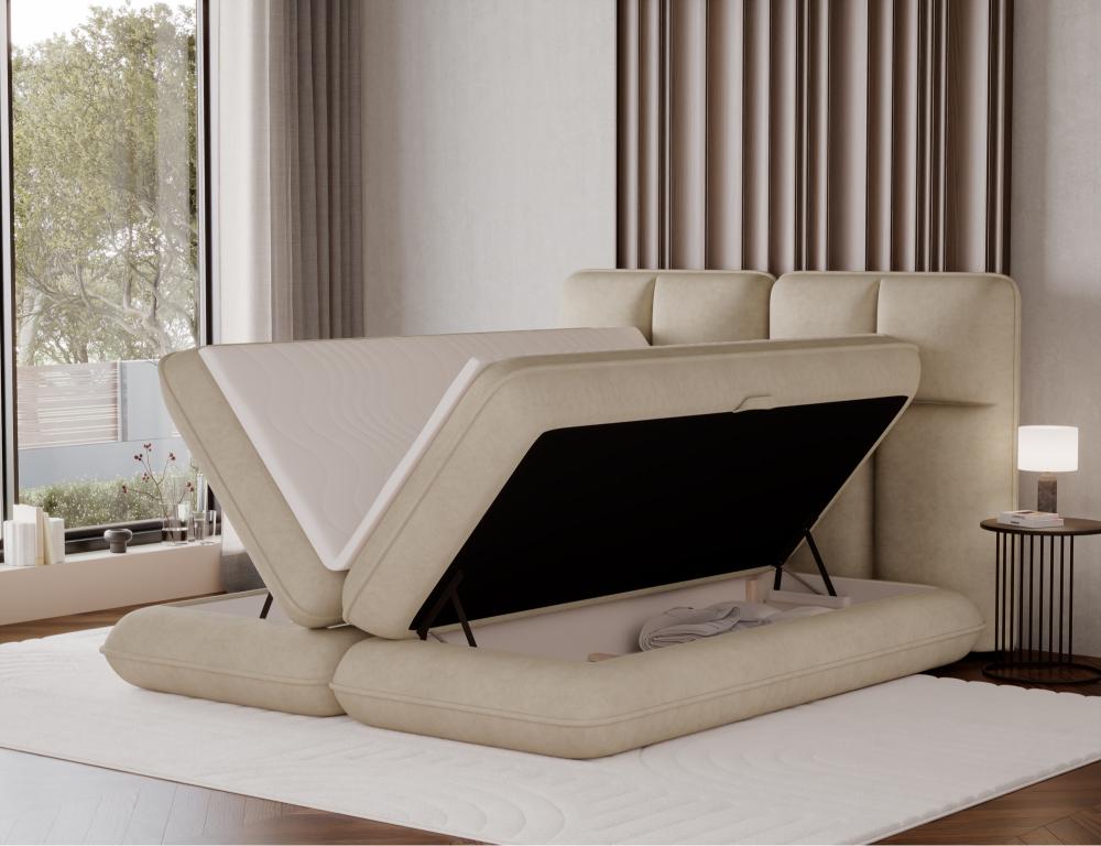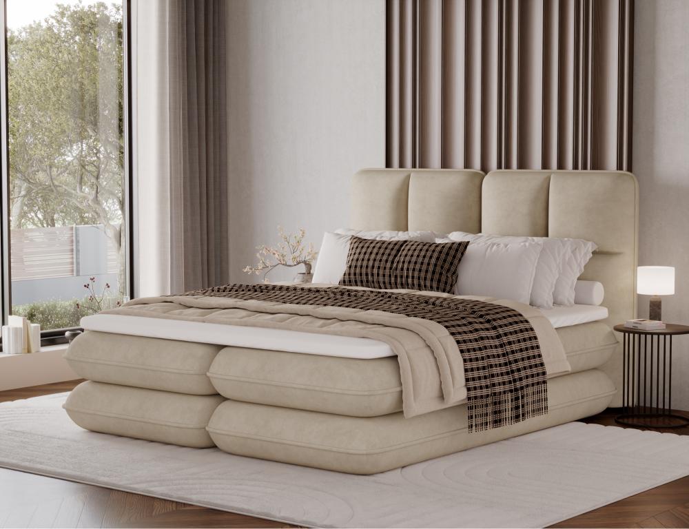 Επενδυμένο κρεβάτι Tario-Μπεζ-180 x 200