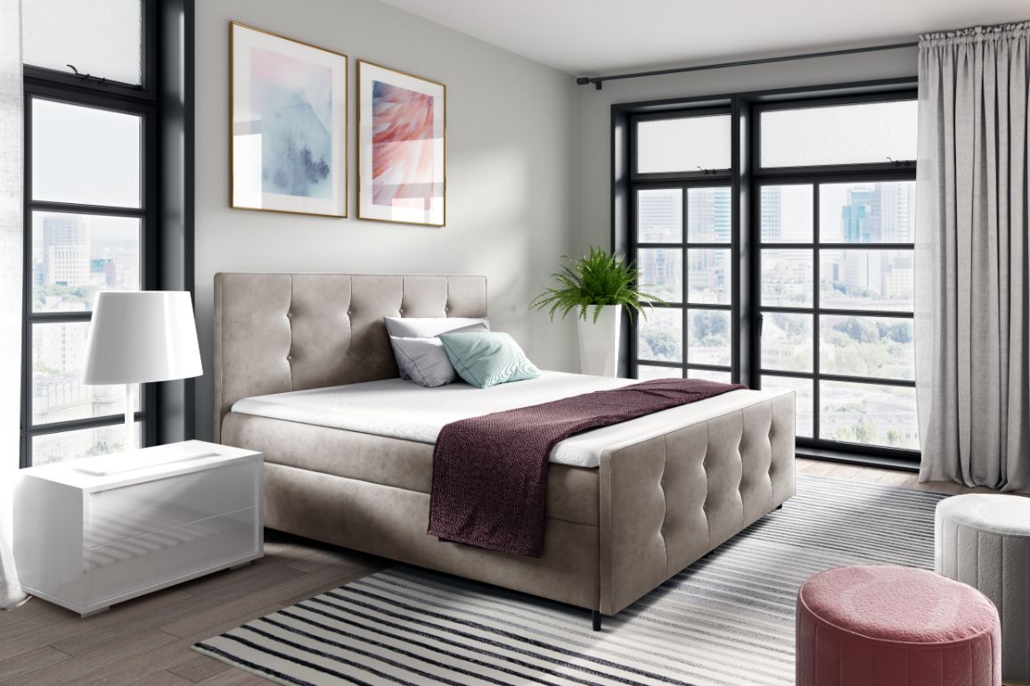 Το επενδυμένο κρεβάτι Viena με το κλασσικό του σχεδιασμό και το αναπαυτικό του στρώμα είναι η ιδανική επιλογή για να περασέτε ατελείωτες ώρες χαλάρωσης. Το εκπληκτικό του στύλ και τα περίτεχνα σχέδια του θα αναβαθμίσουν αισθητικά τον χώρο σας και θα μαγνητίσει όλα τα βλέμματα.