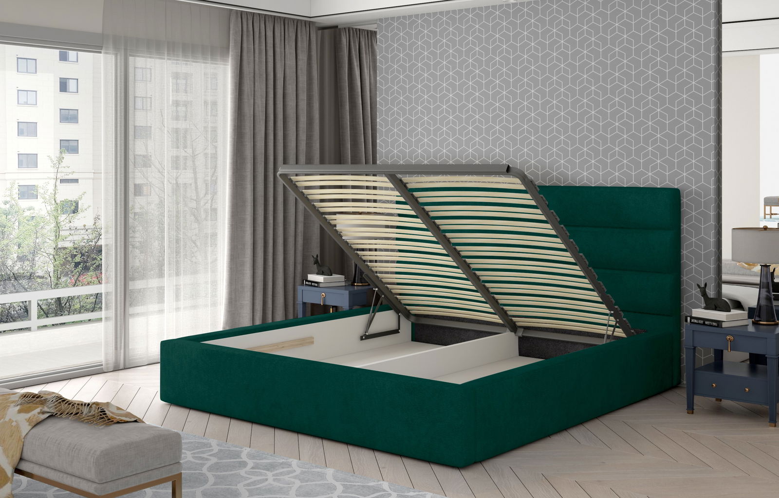 Επενδυμένο κρεβάτι Volcito-180 x 200-Πράσινο-Με μηχανισμό ανύψωσης