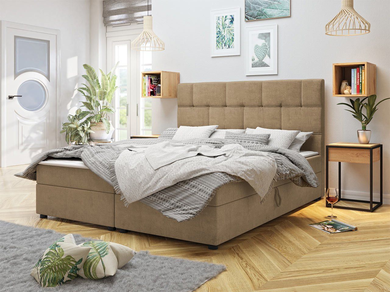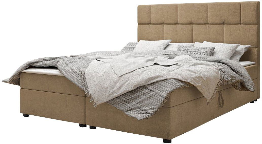 Επενδυμένο κρεβάτι Wall, σε ποικίλες γήινες αποχρώσεις με διακριτική λεπτομέρεια καπιτονέ σχεδίου στο κεφαλάρι. Διαθέτει ενσωματωμένο στρώμα, το οποίο προσαρμόζεται στην επιφάνεια του σώματός σας, διασφαλίζοντας τη σωστή στάση κατά τη διάρκεια του ύπνου.