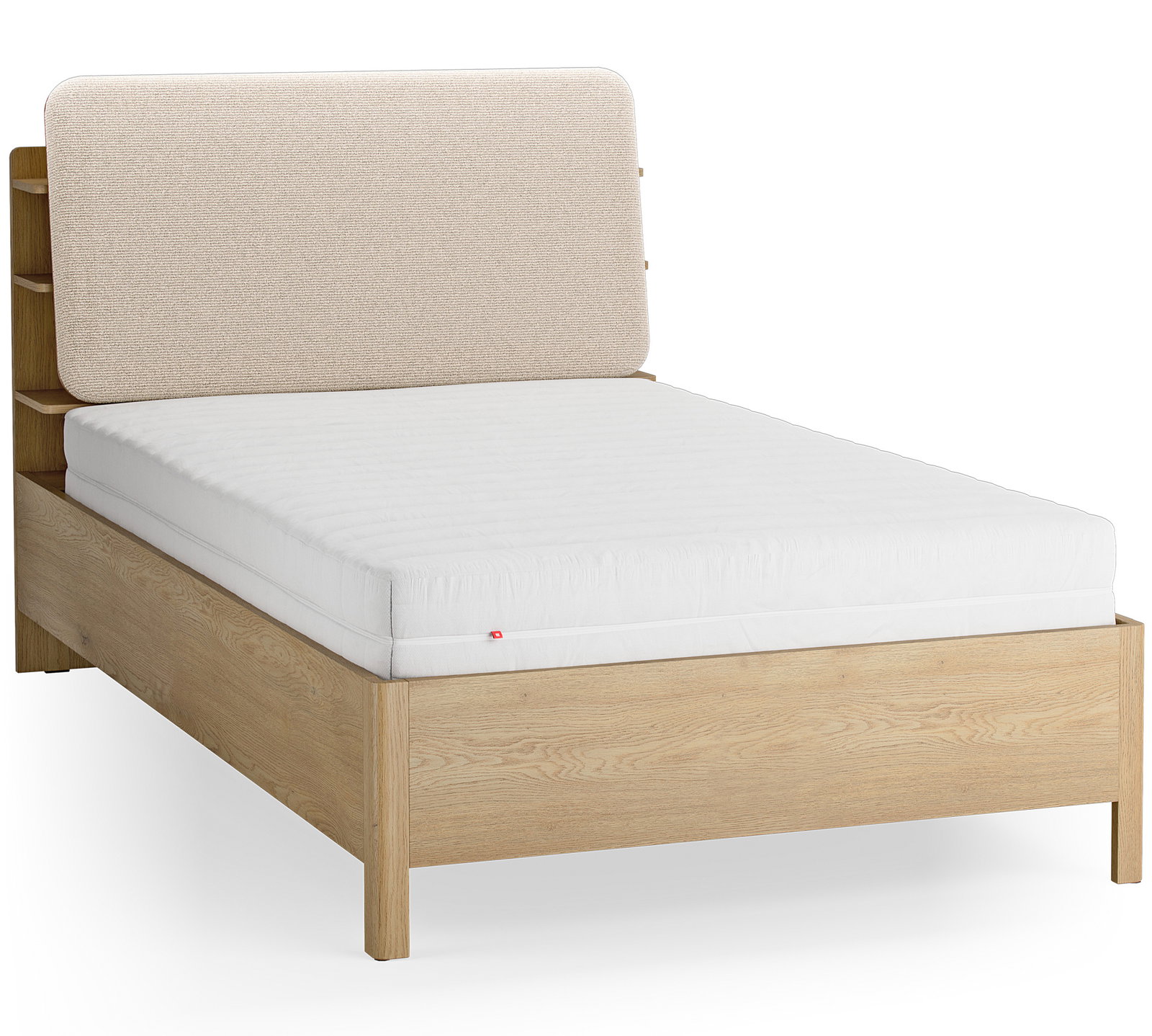 Το Επενδυμένο Κρεβάτι Wellys I συνδυάζει την άνεση της υφασμάτινης επένδυσης με την πρακτικότητα του φυσικού ξύλου. Διαθέτει ένα ιδιαίτερο κεφαλάρι που ενσωματώνει ανοιχτά ράφια, προσφέροντας έξυπνο αποθηκευτικό χώρο για βιβλία και προσωπικά αντικείμενα.