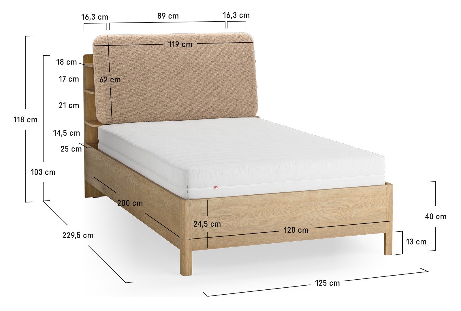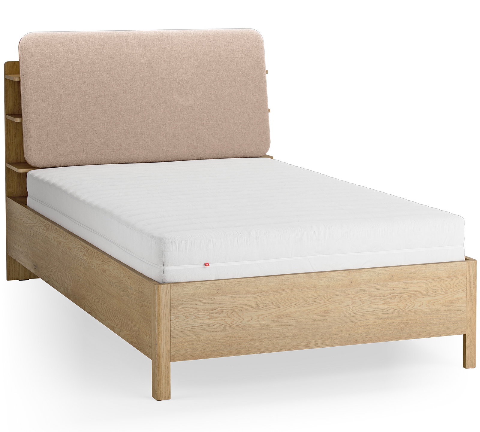 Το Επενδυμένο Κρεβάτι Wellys I συνδυάζει την άνεση της υφασμάτινης επένδυσης με την πρακτικότητα του φυσικού ξύλου. Διαθέτει ένα ιδιαίτερο κεφαλάρι που ενσωματώνει ανοιχτά ράφια, προσφέροντας έξυπνο αποθηκευτικό χώρο για βιβλία και προσωπικά αντικείμενα.