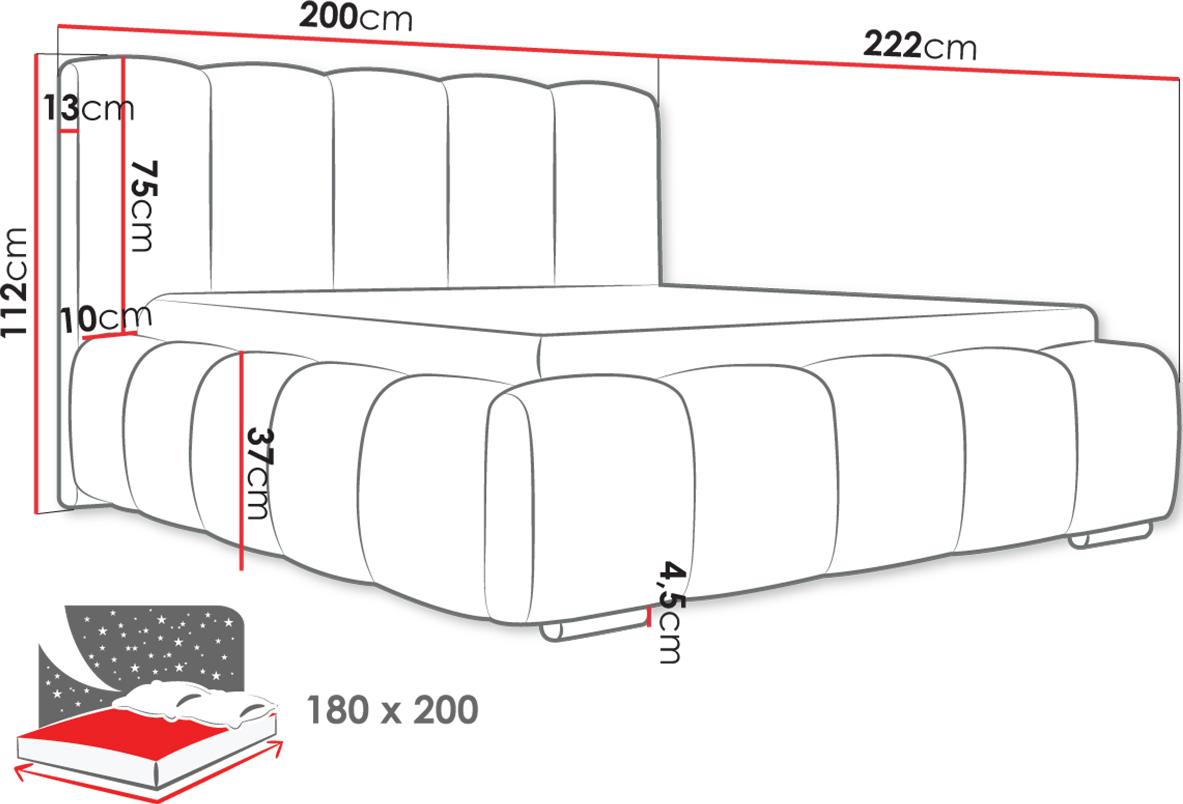 Επενδυμένο κρεβάτι Wizko-Anthraki-180 x 200
