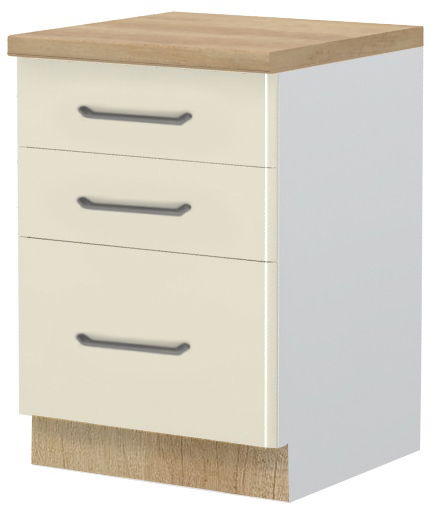 Επιδαπέδιο ντουλάπι Modena R-60-3F, η ιδανική λύση για την αποθήκευση σκευών μαγειρικής και μικροαντικειμένων στον χώρο της κουζίνας. Συνδυάστε με τα υπόλοιπα έπιπλα της σειράς κουζίνας Modena, για να δημιουργήσετε την ιδανική κουζίνας στα μέτρα σας.