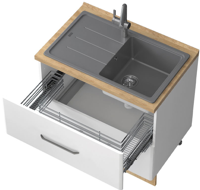 Επιδαπέδιο ντουλάπι νεροχύτη Modena R-90-2MZ, η ιδανική λύση για την εκμετάλευση του χώρου κάτω από τον νεροχύτη και την αποθήκευση σκευών μαγειρικής και μικροαντικειμένων στον χώρο της κουζίνας. Συνδυάστε με τα υπόλοιπα έπιπλα της σειράς κουζίνας Modena, για να δημιουργήσετε την ιδανική κουζίνας στα μέτρα σας.