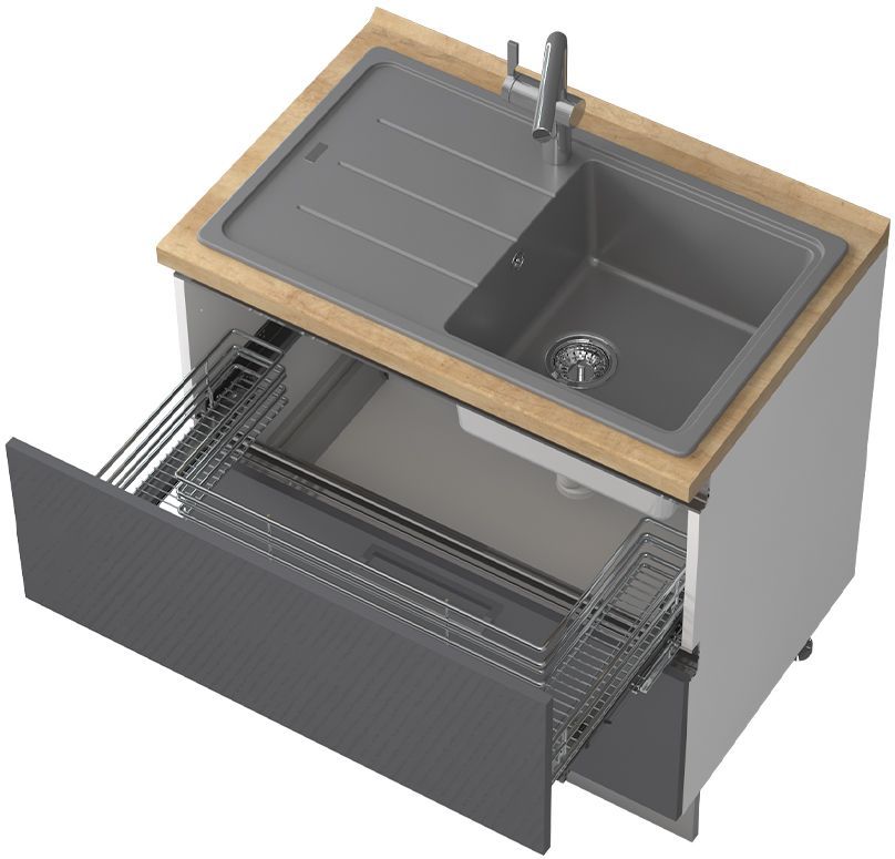 Επιδαπέδιο ντουλάπι νεροχύτη Trinity R-90-2MZ, η ιδανική λύση για την εκμετάλευση του χώρου κάτω από τον νεροχύτη και την αποθήκευση σκευών μαγειρικής και μικροαντικειμένων στον χώρο της κουζίνας. Συνδυάστε με τα υπόλοιπα έπιπλα της σειράς Trinity, για να δημιουργήσετε την ιδανική κουζίνας στα μέτρα σας.