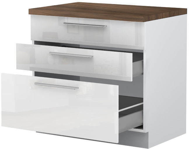 Επιδαπέδιο ντουλάπι Raval R-90-3MBOX, η ιδανική λύση για την αποθήκευση σκευών μαγειρικής και μικροαντικειμένων στον χώρο της κουζίνας. Συνδυάστε με τα υπόλοιπα έπιπλα της σειράς κουζίνας Raval, για να δημιουργήσετε την ιδανική κουζίνας στα μέτρα σας.
